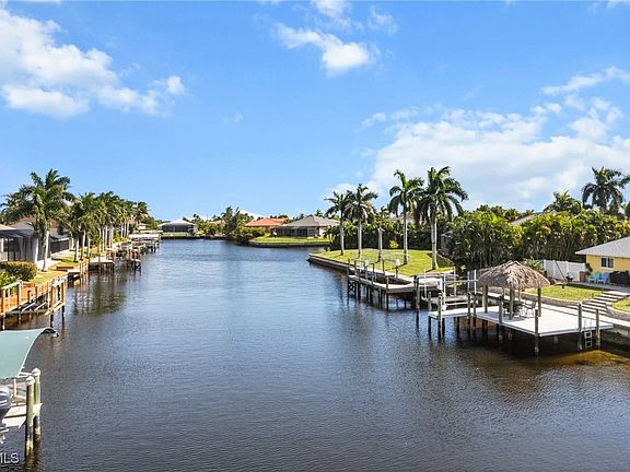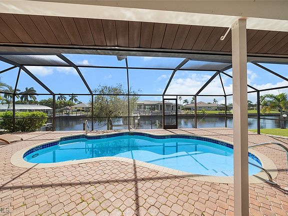 Fully updated Gulf Access Pool Home—a true showcase with sunny southern exposure pool and stunning wide canal views. Every day feels like a vacation as sunlight pours across the pool and lanai, reflecting off the sparkling waters beyond your private dock with boat lift. Step inside to discover a beautifully remodeled 3-bedroom, 2-bath home. The custom kitchen is the centerpiece—crafted with quartz countertops, soft-close cabinets, stainless-steel appliances, a convenient pot filler, wine refrigerator and a designer sink. Pocket sliders from the living room and master suite disappear to create seamless indoor/outdoor living. The expansive lanai offers generous seating areas, a sparkling pool, pool bath, and an outdoor shower—all overlooking the tranquil intersecting canals. This turnkey furnished home is move-in ready—just bring your toothbrush and bathing suit. With a private dock and boat lift, you’ll enjoy gulf access to Fort Myers Beach & Sanibel Minutes from shopping, dining, and all that Cape Coral has to offer, this property delivers the ideal blend of convenience and coastal elegance. Whether you’re seeking a full-time residence, a vacation getaway, this home embodies the best of Florida living—Recent improvements include a newer roof, AC system, replumbed, resurfaced pool, and newer pool heater, newer washer/dryer and epoxied garage floor.