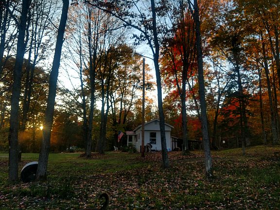 A single family home heated primarily by fuel oil and secondarily by wood stove. Entire interior redone/updated in 2017; new bathroom with tile shower and custom vanity and sinks, new kitchen countertops, sink and flooring. Master bathroom new carpet and shelving/ window seat. Room off the back of the trailer not pictured, contains W/D, storage, and wood stove. Asphalt driveway and garage floor. Roomy garage 36'x24' previously used as mechanic shop for motorcycles. Contact for more information or a viewing!