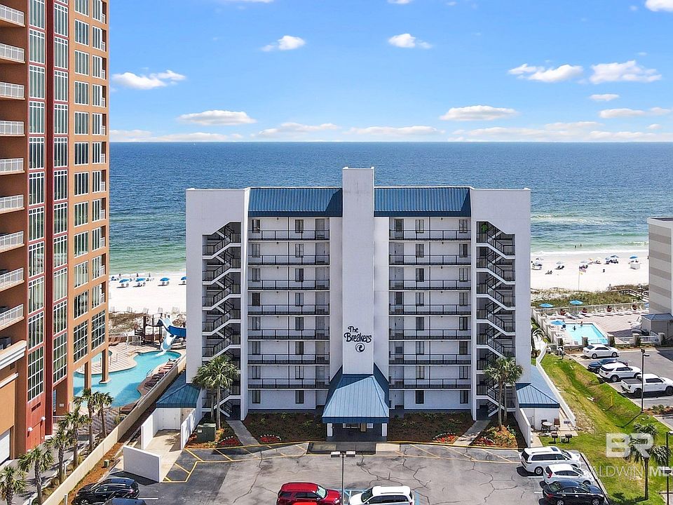 You will love the stunning VIEWS from this updated 6th floor corner unit at The Breakers - a low-density Gulf front complex in the heart of Orange Beach. This unit is a popular rental, grossing $45,000 in 2025! With more than 1,100 square feet, this spacious condo boasts 2 bedrooms, 2 bathrooms, and a generous living and dining area. The private balcony offers a great space for coffee sipping, relaxing, and taking in the incredible views of the pool, beach, and the Gulf. The unit conveys beautifully furnished and is rent-ready. This unique low-rise complex offers quick access to the beach, and a community pool and large grass courtyard right on the Gulf! You can't beat this location. The Breakers is right across the street from many popular restaurants, grocery stores, and retail shops. It is also walking distance to the popular beachfront Coastal Restaurant. This unit would be great for an investment property or second home! Don't miss your chance to own this piece of paradise. Buyer to verify all information during due diligence.