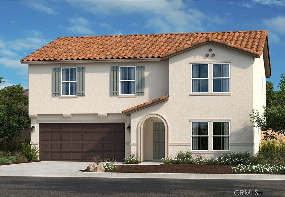 New Spanish Style two story, still time to personalize, 5 bdrm, 2.75 ba, plus loft, Crisp white kitchen cabinets, with iced white kitchen countertops, stainless steel whirlpool range, dishwasher and microwave, Kitchen Island, Spacious great room, large primary bedroom, walk-in closet, inside laundry room, tankless water heater, ENERGY STAR® certified homes tested and verified by third-party inspection. Solar lease w/choice to purchase, No HOA