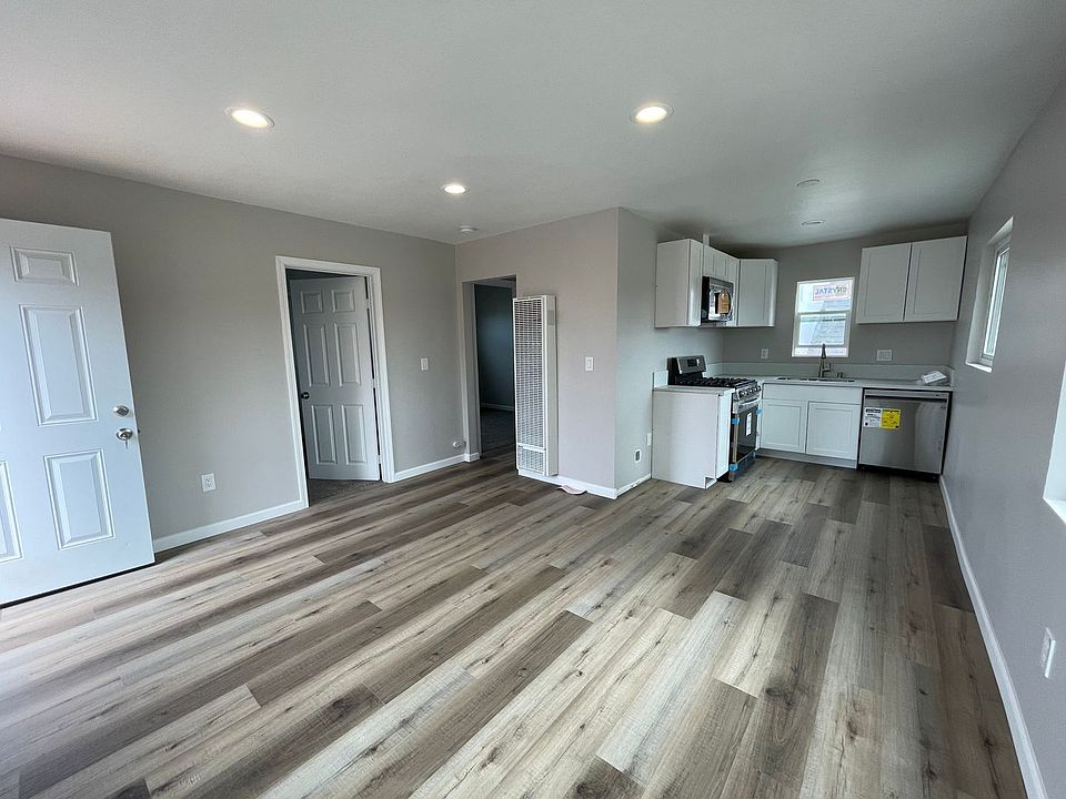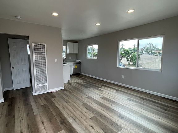 MOVE IN SPECIAL! $500 off first months' rent, must move before sept 1st. We are pleased to offer this upgraded two bed, one bath apartment home. Situated upstairs, this apartment home shares not common walls allowing for ample natural light throughout. All new windows, flooring, kitchen and bath make this upgraded unit a lovely place to call home! This property is situated on a large corner lot in National City with easy access to the 5 FWY, 32nd St Naval base and plenty of shopping centers nearby. This apartment homes offers: - New kitchen and full stainless steel appliance package (fridge is not pictured, but there is one included) - New bathroom and vanity - New Carpet in the bedrooms and vinyl plank flooring - Open concept living space - upstairs unit - On-site laundry! Trash and Recycling Included! Plenty of street parking
