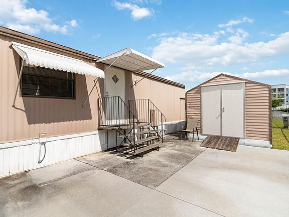 Move-in ready manufactured home now available! Own the land & home!! Recently updated, 2 bed/2 bath home in the Shire. Newer electrical, plumbing & A/C. Other updates include; wood cabinets, countertops, appliances, subflooring with wood laminate flooring & water heater. Wheelchair ramp has been added as well as widened doorways for wheelchair access. Open floor plan features an eat-in kitchen with updated lighting & newer appliances. The oversized 16X12 storage shed w/electricity can also be used as a workshop. Inside laundry room includes washer and dryer. Furniture & tools are negotiable. Excellent location! Close to the beaches, I-95, shopping, dining, Harris Corp., and the Orlando Melbourne International Airport.