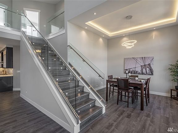 A true luxury 5 bd 3.5 ba home w/ 2 master suites, picturesque views of Mt Baker & Bellingham Bay! 19' grand entry complimented with engagement crystal lighting, towering stone wrapped fireplace dressed w/ Infiniti glass railing & illuminated steps. A chef's dream kitchen equipped w/ high-end Thermidor appliances, double fridge, waterfall feature, walk in pantry & high end acrylic cabinetry. 3 living areas, open loft & massive full length panoramic view balcony. Come view this show piece today.