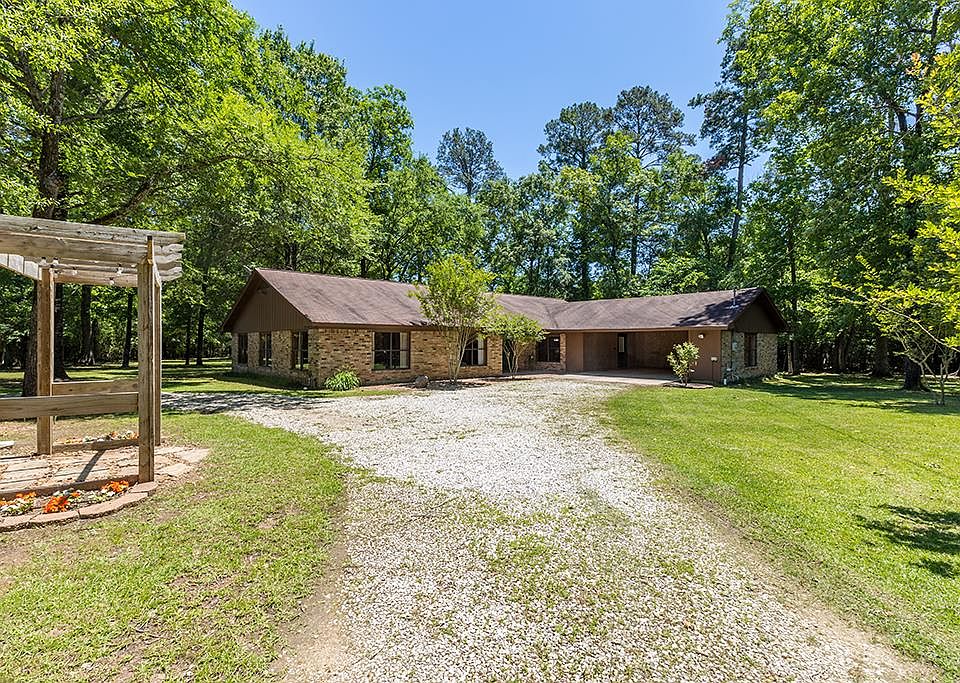 Secluded & Partially Wooded property with Acreage and a large custom built Ranch Style brick home! This property has 4 bedrooms, 2 baths, & includes over 8 acres of land in Huntington ISD! It features a nice open concept living area with a wood burning fireplace that is ducted throughout the home, beautiful pine and cedar walls, large island kitchen with hickory cabinets, 2 living areas, a huge walk-in pantry/laundry room, breakfast area, & formal dining room. It also includes a 20X30 metal workshop on a slab, 18X22 wood deck, circle driveway, beautiful landscaping, & multiple fruit trees!