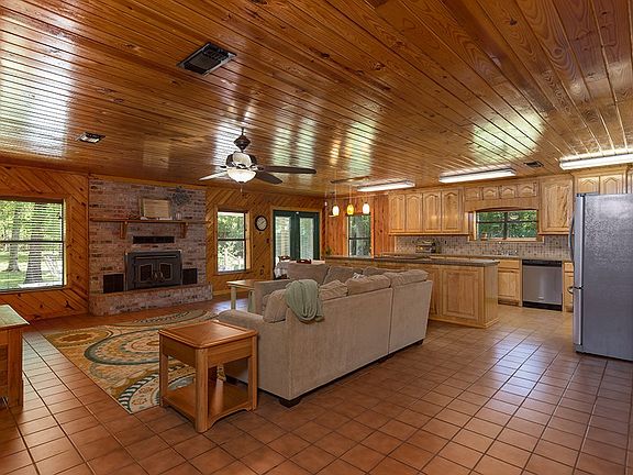 - Interior Features: Ceiling Fan(s), Breakfast Bar, Smoke Detector, Alarm System, Island Kitchen, Woodburning Fireplace, Blinds, Pantry