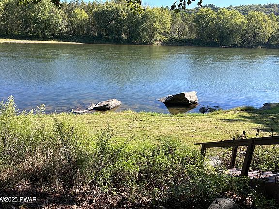 Charming riverview/riverfront chalet within walking distance to Callicoon on the Delaware. There are 2 parcels. Chalet sits on a 2 ac lot totally in Flood Zone X. Riverfront parcel of 0.26 acres is in Zone A with 178 ft. of riverfront land. There is a shed/storage building on that parcel. The home has comfortable living space of entrance foyer, living room with wood stove, dining area, kitchen and bathroom. Upstairs you wil find a spacious bedroom, with the loft area serving as bedroom #2. What a great affordable place to bring your family and enjoy weekends on the river. The walk to Callicoon is pleasant and easy. The riverfront is gorgeous with 2 great river rocks right there. Time to make memories!