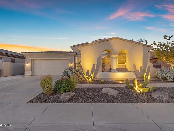 Welcome to this stunning single-level home in the highly desirable Paseo Trail community, where exceptional design meets everyday comfort. Boasting 4 spacious bedrooms and 3.5 bathrooms across 3,043 square feet, this residence impresses from the moment you arrive with its gorgeous curb appeal, mature desert landscaping, cacti, and attractive outdoor lighting.