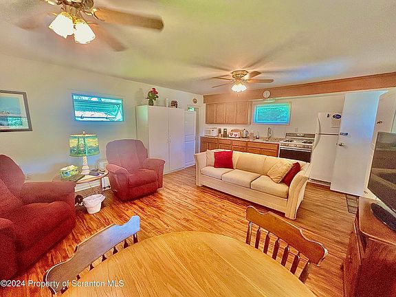 Sportsman's Paradise! This 4 SEASON property has given the current owners decades of pleasure, excellent hunting and game. This newly renovated cabin sits on 5.55 wooded and cleared acres 1 mile from State Game Lands. Completely remodeled in 2020. Kitchen with new cabinets and counter tops. Living room has plenty of light and a new propane heater (2022). Bathroom has been updated with a new toilet, vanity, and lights. New sheetrock and Luxury Vinyl flooring throughout. Unique, One of a kind, Handmade Bunks from Maple trees sleep 4, but cabin can sleep plenty more comfortably. Sunroom. Front deck is a perfect spot relaxing. Solid masonry block building. New roof in 2021. Front is outlined by beautiful stone walls. Level parking. Sitting area with fire pit. Two sheds for storage. Here you can relax and enjoy yourself on 5+acres of beautiful country land. Views from EVERY direction! Sit back relax quietly or walk thru the fields and woods with your animals or ride your ATVs. This rural hide-away offers so much!! Hunters Oasis, Family retreat or just a serene place to enjoy the solitude of the surroundings. this property is a GREAT recreational property in the Endless Mountains. Close to the NY border. MOST furnishings are included. NO OGM rights convey with sale. Call today for your private showing!