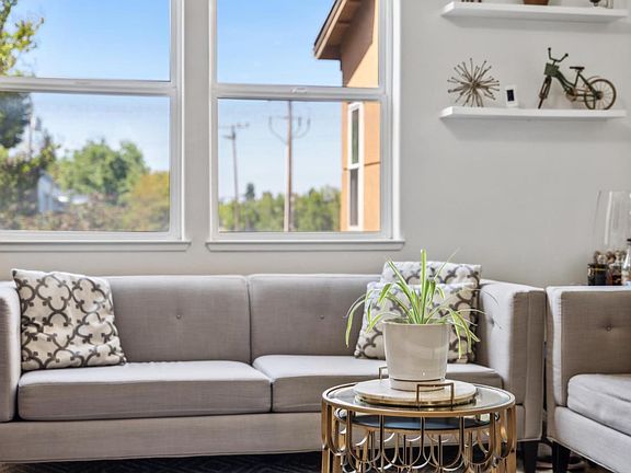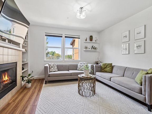 Welcome to this beautifully upgraded 3-bedroom, 3-bathroom home, built in 2007, tucked within a private enclave and designed for modern living. Featuring an open floor plan with abundant natural light, this home is perfect for both relaxation and entertaining. The stylish kitchen boasts granite countertops, stainless steel appliances, and cherry cabinets, seamlessly flowing into the dining and living areas. The spacious primary suite offers a luxurious retreat with his and hers closets, dual sinks, a soaking tub, and a separate shower. Additional highlights include cherry Brazilian hardwood floors, crown molding throughout, dual-pane windows, and a cozy gas-burning fireplace. The home also features an attached two-car tandem garage with convenient in-unit laundry. Nestled in a charming community with a playground and BBQ area, this home is just minutes from BART, highways 880 and 92, and vibrant downtown shops and restaurants. With low HOA fees and an unbeatable location for commuters, this is an incredible opportunity you don't want to miss!