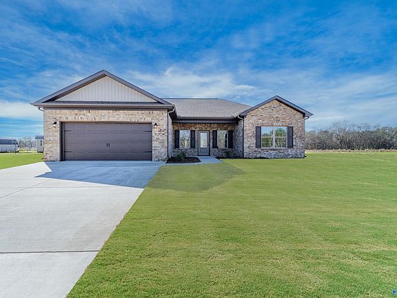 Brand new 3 bedroom, 2 bathroom full brick home in Elkmont with 1,438 sq ft of well-designed living space. Open-concept kitchen and living area feature granite countertops, custom cabinetry, and durable LVP flooring. The isolated owner’s suite offers added privacy with a full bath and walk-in closet. Additional bedrooms provide flexible space for guests or home office. Enjoy a spacious backyard and a 2-car garage. Convenient to I-65, shopping, dining, and commuting routes. Move-in ready and thoughtfully built.