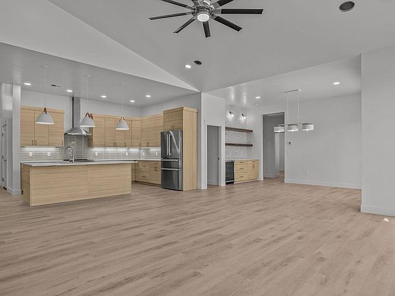 Welcome to this modern and stylish 4-bed, 3-baths ranch-style home, meticulously created by Dahl Built Homes. Designed with comfort and livability in mind, this home features contemporary angles and high-end finishes throughout. The open concept living area is the heart of the home, boasting a spacious kitchen with a walk-in pantry, a broad dining room with a convenient coffee dry bar, and a large living room complete with a cozy fireplace and entertainment center. The kitchen and dining area enjoy soaring 10' ceilings. The master suite is thoughtfully tucked away for privacy. Two secondary bedrooms share a Jack & Jill bathroom, perfect for convenience and functionality, while the third bathroom is easily accessible from the fourth bedroom, which can also serve as an office. Front landscaping and all perimeter fencing are included. With its blend of modern design, quality craftsmanship, and thoughtful layout, this Dahl Built Home is sure to exceed your expectations.