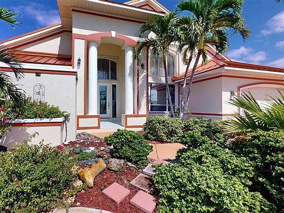 Welcome to 2548 Brazilia Court in Beautiful Punta Gorda Isles. This extraordinary sailboat home, boasting over 2700 living square feet, encompasses dramatic architectural features while capturing the beauty of wide panoramic views of intersecting waterways. Five minutes from Ponce Inlet, the location is a boater's delight. Enjoy a 50' concrete dock with new pilings and a 10k boat lift so you can cruise Charlotte Harbor or head to the Gulf of Mexico. Soaring 18 ft. ceilings, 8 foot sliding glass doors and transom windows bring the outdoors in with an abundance of natural light. Granite counters in the kitchen and baths, 20" tile floors throughout. Enjoy a gourmet kitchen with large center island and double ovens (one is convection) and sub zero fridge, great for large parties. Kitchen has had a recent upgrade with soft close doors and drawers along with counters. The eat-in-kitchen with an aquarium glass beveled window overlooks the large heated pool and brick paved lanai area. The garden master bath offers a clear glass enclosed shower and Jacuzzi tub, double sinks and beautiful granite counter tops. Your guests will love the extra large bedroom suites and guest bath. The Family room which has access to the pool could also be used as a large game room. And to top it all off the Solar panels will keep those electric bills at a minimum for many years to come.