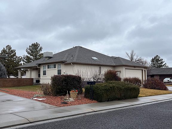 Brick and stucco ranch style home in perfect condition. CLEAN, CLEAN, CLEAN! New roof 2023, Breezaire cooler, all kitchen appliance included. Beautifully landscaped 1/3 acre (appox.), corner lot with private covered patio off of great room. 3 bedrooms, plus an office, 2 full baths. Lovely great room with vaulted ceiling and gas fireplace open to the kitchen with breakfast nook, serving bar and desk area. Large primary suite with jetted soaking tub, double sinks, separate shower and large walk in closet. 2 additional bedrooms and full bath in separate area. Oversized 3 car garage with additional storage. Easy walk to the neighborhood pond/fountain. Take a look.. This is a great property in a lovely NORTH GJ location!