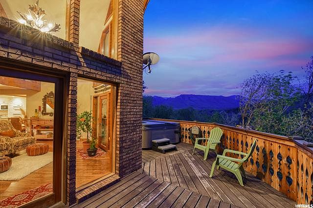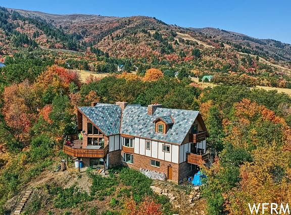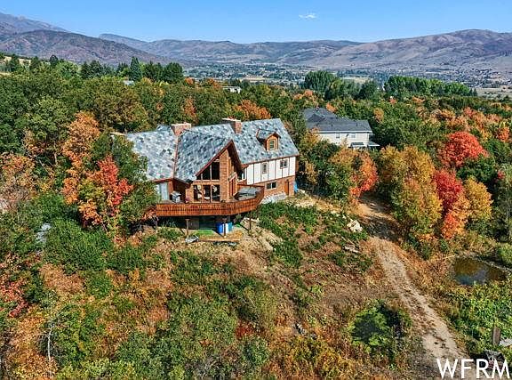 Genuine Swiss Chalet nestled into the forest. This home was built and then remodeled by two parties who truly love the valley, the home, and an exceptional quality of life. Wind your way back into Nordic Valley to find this haven. Arriving at the retreat takes you immediately into relaxation. Surrounded by trees the prow offers valley and mountain views of green hillsides, blue skies, glowing sunsets, and evening twinkling lights. The main house boasts a two-story quartzite fireplace, floor-to-ceiling windows and sliding doors that bring the outside in, a "great" gathering room, a dining area, and a gourmet kitchen. Morning sun basks the deck and hot tub. Enjoy quiet time in the library upstairs or make it a party in the theater room in the walkout basement. Each floor has its own master suite. The current owner is a professional artisan and contractor. Specific features include 2'x6' construction throughout, exterior plasterboard masonite, all new rubber and plastic composite roof with a 75-year warranty, each fireplace has a cast iron Heatilator insert, meticulously refinished hardwood floors, handcrafted woodwork on decks with hand-cut and gold painted spindles, custom-built cabinetry with dovetail finishes, granite counters, high-quality Advanced windows, natural gas, tankless-instant hot water. The basement has ski space storage as well as a spacious craft/sewing/laundry room. Two natural streams and ponds on the property. The seller is currently installing an extensive, professional landscape design to be completed prior to closing. Design plans for a detached garage with an art studio available. Floor plan description - The apartment is over the garage with stairs to the main entry, kitchen, living, dining, bath, and laundry. Up to the second level to a master bedroom with balcony (VIEWS) and office. The office does have a door to the main house upstairs loft. The main house entry has double doors and a few steps up to the main living room with prow windows. On this level is the kitchen, dining, living room, half bath as well as an en suite bedroom and bath. Upstairs is a loft with more views as well as an en suite bedroom and bath. The basement has a walk-out to the covered patio as well as entry to the garage, ski storage, a large laundry room with plenty of storage and space for sewing or crafting, a cozy living room with a fireplace, and an en suite bedroom and bath. The garage is heated! Rarely gets below 40 degrees. Please call with questions.