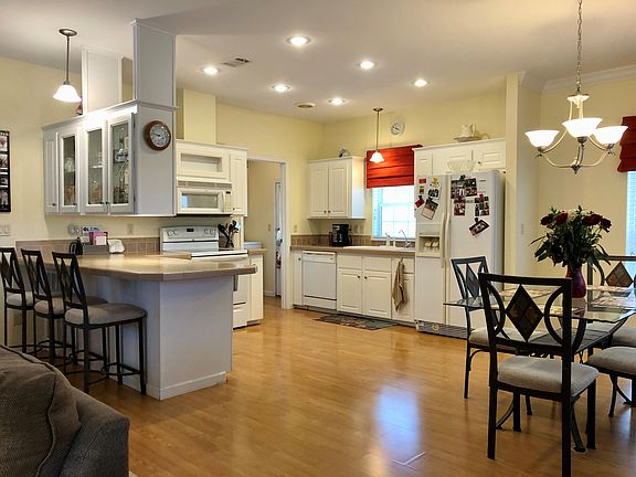 This well maintained home offers a has a large driveway, 2 car garage with work space and a screened in breezeway leading to beautiful views of the golf course. This fully furnished open floorplan offers two bedrooms, 2 bathrooms and a den/office great for entertaining. Recent upgrades consist of the new roof in 2023 / New AC in 2019 and added features including screened lanai 12X20 / screened in Breeze Way 8X20 / with extra large storage in garage. Both bathroom have been newly updated with walk in showers. Schedule a private tour of our vibrant 55+ community and homes by calling today at 888|317|1102.