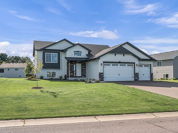 Welcome home to this nearly new 3BR/2Ba home that was built in 2019. From the moment you drive up you will love the look of this home with it's stone and shake accents, 3 car garage and lovely landscaped yard. Inside offers a great layout with large welcoming entryway head up to the spacious and vaulted living and dining room and the gorgeous kitchen w/center island, loads of cabinets, complete ss appliance package, granite tops, all laminate wood flooring in these areas as well. Two generous sized bedrooms with walk in closets. The owners suite has built in nook and your own private 3/4 bath. The lower level has another bedroom / utility room with washer / dryer and plenty of room for future finishing. Great 3 car garage that is sheet rocked and painted plus an epoxy floor. Beautiful landscaped yard with a sprinkler system and lots of trees have been planted as well. Come take a look at this gorgeous nearly new home....