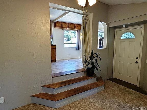 A charming home nestled in the hills of Escondido. Park was originally established as a fishing village for Lake Wohlford. Home has been upgraded and remodeled. A new neutral colored carpet greets you as you enter the home. Vinyl tile flooring can be found in the upper portion of the home. Enjoy energy efficient smart led lighting, ceiling fans, dual paned windows, a tankless water heater, and a whole house water triple filter water filtration system . The kitchen upgrades include gorgeous oak cabinets, composite granite countertop, upgraded farm sink and fixtures, double pantry and built-in microwave. The updated bath includes newer sink/cabinet and large bathroom closet for rare extra storage. Outside the living room accessed through the sliding glass door can be found an expansive deck. Enjoy lounging or barbecuing here while enjoying the great outdoors. Secluded by mature trees and shrubs, the patio will become your oasis. Outside is also located 2 sheds and the laundry closet with extra built in shelves. Home has been freshly painted inside and out. School busses pick up for the local schools in the park office parking lot.  Minutes away, enjoy   fishing, hiking and picnicking at Lake Wohlford.