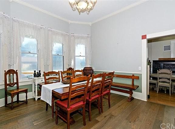 Country living in the heart of Old Town La Verne. This 1890's home is a true gem and features Victorian farmhouse style, complete with a wrap around porch. As if the beautiful architecture of the exterior wasn't enough, you will definitely fall in love with this home the second you walk in the front door! Turnkey and move-in ready. The living room is welcoming and bright with huge dual pane, double-hung windows. Enjoy dinner in the good size dining room with gorgeous windows and crown molding, after cooking on your newer 6 burner stove in the updated kitchen. Downstairs bath has pedestal sink and claw bathtub. Home features newer flooring and the kitchen has hardwood floors. Indoor laundry located in the 13 x 26 finished basement (not included in the square footage). In the backyard you will find plenty of room for your pets, complete with chicken coop! Note there is no garage, but there is a "He Shed" and "She Shed" behind the 18 x 35 RV parking pad, complete with RV hookups. Within walking distance to downtown La Verne, this home is located in the award winning Bonita Unified School District close to the 210, 10 and 57 freeways. Updated electrical / copper plumbing / HVAC / roof / windows / tank-less hot water heater / fully insulated with R-13 Fiberglass. This home is a must see!
