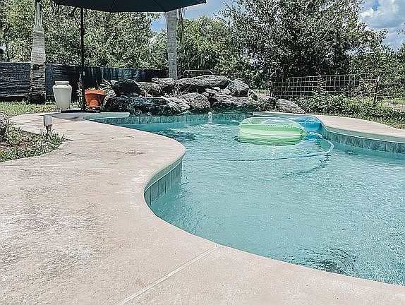 Rare equestrian property just 3 miles from downtown and 5 miles to the beach! Situated on 4.5 acres east of I-95 in Flood Zone X, this parcel features a 30x40 barn with stalls, loft, feed room, and separate well, plus a large pond, carport workshop, and two paved entrances. The 1,326 sq ft, 2-story home offers 2 beds/2 baths, vaulted ceilings, porches, balcony, fireplace, and a pool. Home needs a new roof and TLC—cash buyers only—making this the perfect opportunity to create your dream horse property near the coast.