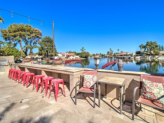 Homes with this many ''Must Have'' boxes checked are seldom found - THIS IS IT! This breathtaking home is located In the coveted Laguna Shores of Dobson Ranch. Two Primary master bedrooms, and attached guest quarters. The chef's dream kitchen is simply stunning with a glorious view of the lake. Drive through garage/workshop area allows for catering access for the enchanted outdoor living space; outdoor kitchen, massive seating area and stunning private pool. Interior attention to detail is evident in all kitchen, bath, laundry and garage upgrades, 4 car garage and storage room with a/c. Bring your Kleenex, the exquisite kitchen, indoor upgrades, lakeside built in kitchen, pool and lake entertainment areas and VIEW will bring you to tears! You simply have to see this home, HURRY!