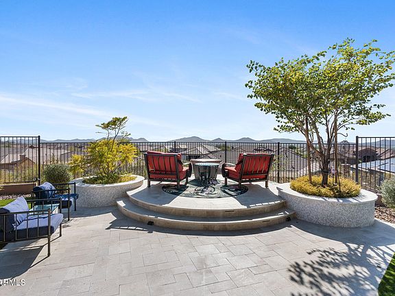 STUNNING CITY LIGHT, SUNSET & MOUNTAIN VIEWS!! This updated Castile floor plan offers 3 en suite bedrooms, den & 3.5 baths. Remodeled Chef's Kitchen includes huge island, granite counters, stainless KitchenAid appliances including gas cooktop, wall ovens & built-in refrigerator. Kitchen opens to spacious family room. Primary suite includes sitting area, private patio, dual vanities, oversized tub, walk-thru shower & double walk-in closets. Backyard features new limestone pavers, synthetic turf, spa with ramada & elevated sitting area!