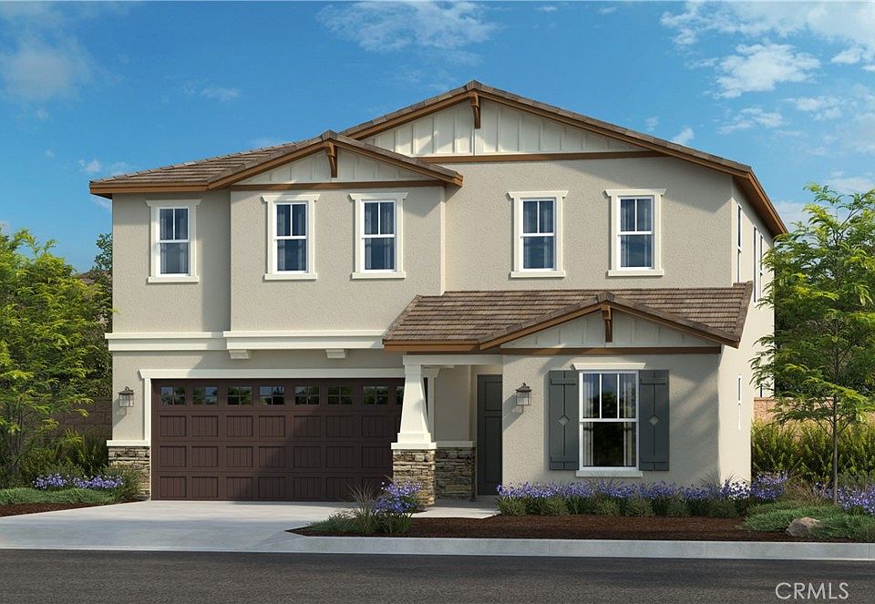 "New Craftsman Style all electric two-story home. Includes 3 bdrm, 2.5 baths, with a den and a loft. Spacious great room. Kitchen boasts a a large island with quartz counter tops, white cabinets and Energy Star Certified Whirlpool dishwasher, electric range and microwave hood combo. Vinyl plank flooring throughout downstairs. Large primary bedroom, walk-in closet, walk-in shower, and laundry room upstairs. Solar w/choice to lease or purchase. No HOA. Future community central park, which will feature ball fields, a basketball court and play equipment. Minutes to I-215 via Hwy. 74. Walking distance to local elementary and high schools. Shopping and dining nearby at Menifee Countryside Marketplace and Menifee Town Center. Adjacent to Marion V. Ashley Community Center and Park, which offers a gymnasium, fitness trails and picnic and play areas" Short distance to Lake Perris. Inventory homes are hard to come by right now so we encourage you to come in and see this beautiful home as soon as possible.