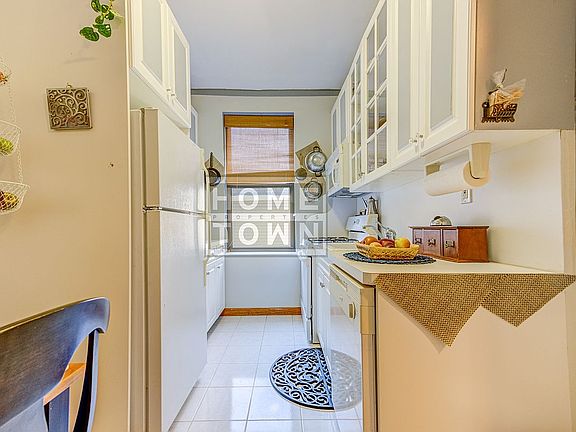 The renovated eat in kitchen boasts tiled floor, dishwasher, full size refrigerator/freezer, generous