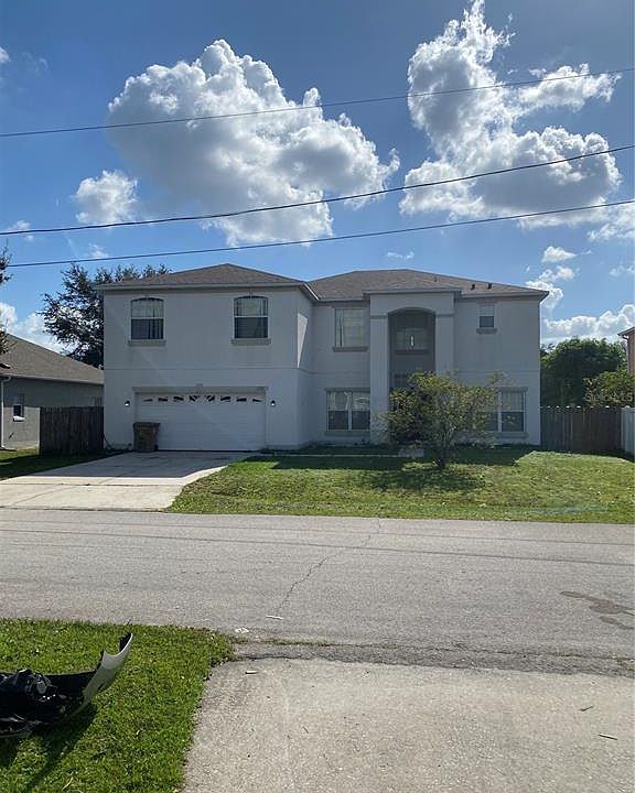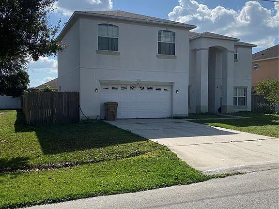 This spacious home offers a blend of comfort and elegance. Featuring 4 bedrms., 2.5 baths, 2 car garage. The high ceilings offer plenty of natural lighting and makes the home feel airy and inviting. There is laminate flooring throughout the 1st floor that was replaced in 2018 - easy to maintain. The kitchen is fully equipped with stainless steel Samsung appliances and stylish backsplash; it also offers direct access to the laundry room with almost new washer & dryer (2022). The layout of the 1st floor is ideal for entertaining and you will also find a bonus room that is perfect for a home office or a 5th bedroom. The cozy loft area provides a versatile space for relaxation or entertainment on the 2nd floor. The primary suite is a true retreat boasting two walk-in closets and an en-suite bath with dual vanities, soaking tub, and separate shower. The spacious privately fenced backyard and porch offer plenty of space for entertaining and outdoor activities. Roof was replaced in 2017 and all windows screens were replaced in 2023. You will have easy access to Cypress Parkway making it easy to travel to Disney, Universal Studios, downtown Orlando, and MCO (Orlando International Airport). Don't miss this opportunity, book your showing today!