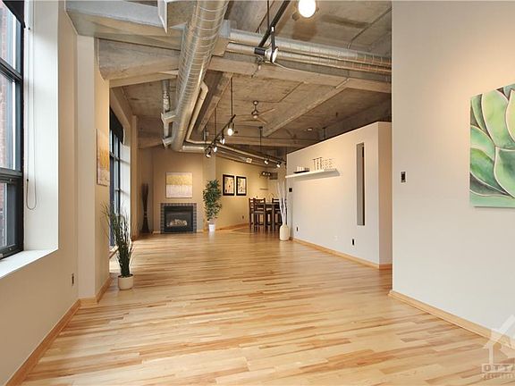 Wow! Domicile 1000 sq. ft of urban style loft condo! Open concept floor plan that can be easily converted into a 2 bedroom to accommodate different needs. Located in the heart of Centre Town this loft style condo has a sophisticated true industrial feel with exposed concrete & ductwork, featuring oversized windows bursting with natural light, 11-foot ceilings, gas fireplace, gleaming hardwood floors & private balcony. A functional kitchen with granite counters, SS appliances & island overlooking living/dining room layout. Bike paths & highway proximity make travelling effortless to all of Ottawa's urban offerings & attractions. In-unit laundry, one parking spot & storage locker included. You will love living here! Check out the 3D tour link below for floor plan. Offers will be presented July 20, 2:00 pm, the seller reserves the right to review and may accept pre-emptive offers.