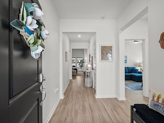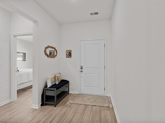 This stunning home situated on a premier wooded lot features 3-bedrooms, 2-baths with a formal dining room that can be used as an office, or den. The kitchen showcases granite counters and a stylish tile backsplash, creating a modern and sophisticated space. LVP flooring spans the entire house, including bedrooms to provide durability and a seamless aesthetic. For energy efficiency and convenience, a Rinnai tankless water heater is included. Seller upgrades to include a screened back porch, fenced backyard, gutters on the outside, and front and rear irrigation. Inside the house they added an upgraded refrigerator, new washer/dryer, fresh paint, custom blinds in all windows, remote ceiling fans & laminate flooring throughout the house! This house is less than two years old and shows like a model home! Don't miss the opportunity to be a part of this exciting community and make this home yours!