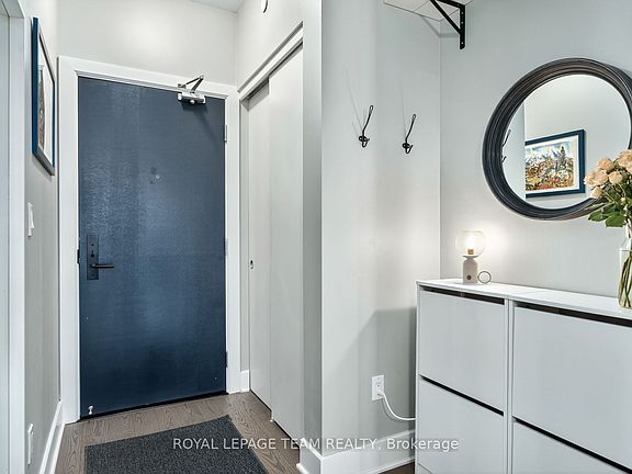 416-255 Bay Street delivers city living with serious style. Enter through The Bowery's sleek lobby, ride the elevator up, and step into your luxe retreat. A wide foyer opens to a polished open-concept space with 9-foot ceilings. A dramatic island anchors the kitchen complete with high-end European appliances. Sunlight floods the living/dining area. Hosting here feels effortless. Dinner for ten, wine with friends, or simply soaking up the glow from floor-to-ceiling windows. Outside, an extraordinary balcony six feet deep and spanning the full width of the home becomes your private lounge in the sky with chic wood tiles, unobstructed Bay Street views, and the city's energy just beyond.The bedroom impresses with custom California Closets; the bathroom spoils with a deep tub and oversized shower. In-suite laundry, independent in-unit climate control, storage, and parking complete the package. Top it off with stunning rooftop amenities: a saltwater infinity pool, sauna, lounge, fitness/yoga centre and panoramic views, all in Ottawa's trendiest, most walkable neighbourhood. Proximity to transit, parks and the soon to be Ottawa Library at LeBreton Flats.