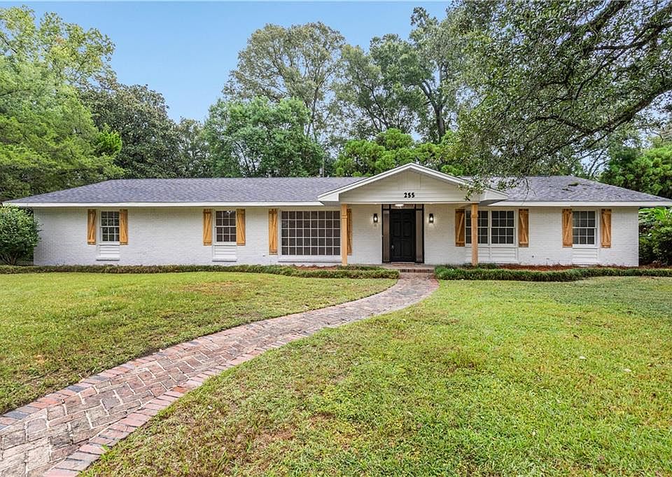 Welcome to 255 Berkley Ct, Mobile, AL 36606 This beautifully updated 1,981 sq ft home blends timeless charm with modern finishes. The freshly painted white brick exterior, accented by stained wood shutters, creates instant curb appeal. Step inside to find a bright, open interior with luxury plank vinyl and tile flooring throughout. The kitchen shines with white cabinetry, quartz countertops, and brand-new stainless steel appliances—including refrigerator, dishwasher, stove, and microwave. Both bathrooms have been completely updated with tiled showers and floors, new vanities, and sleek modern lighting. Fresh paint flows throughout the home, while French doors across the back living area bring in natural light and a seamless view of the spacious backyard. Set on a generously sized lot with mature trees, this property offers both beauty and privacy—perfect for relaxing or entertaining. Don’t miss the chance to make this move-in-ready home yours! Buyer to verify all information during due diligence.