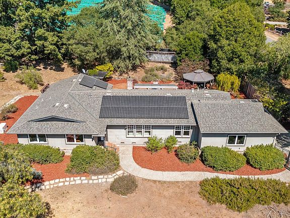 Welcome to an exceptional HORSE PROPERTY that perfectly blends luxury, comfort, and equestrian potential! Set on 2.2 acres of SUNNY, FLAT land in the most desirable sunbelt area of Day Valley. This stunning home features 3 spacious bedrooms, an office, and 2.5 bathrooms, offering ample space for relaxation and work. Enjoy cozy gatherings in the family room or entertain in the formal living room, with custom trim and crown molding throughout. The kitchen/dining room includes a fireplace with French doors leading to a spacious backyard courtyard. This property has incredible expansion potential, including the option to build a second residence. Eco-friendly fully owned solar panels have kept PG&E bills at zero for the past five years, showcasing sustainable luxury. Equestrian enthusiasts will love the 2 EXTRA LARGE CORRALS with STALLS, and a grooming area. The whole property is fully fenced with an electric gate, and dead end road for privacy. Along with the attached 2-car garage, there are 2 stand-alone garages (20' x 40'), ideal for RVs or boats. Don't miss this Day Valley gem, your dream home awaits in Aptos!