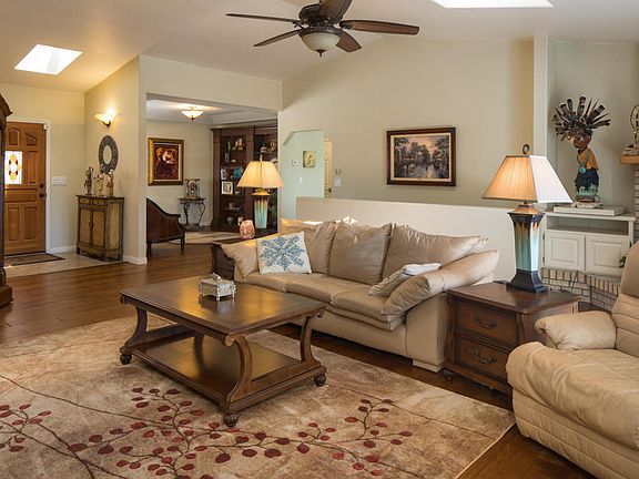 - Interior Features: Ceiling Fan(s), Eat-in Kitchen, Fireplace-Gas, Live on One Level, Master On Main, Raised Ceilings 9+ft, Smoke Detector(s), Walk-In Closet(s), Wash/Dry Connection, Formal Dining Area, Skylight(s), Security System, Utility Sink, Counters-Tile, Jetted Tub, Counters-Solid Srfc, Garage Door Opener(s)