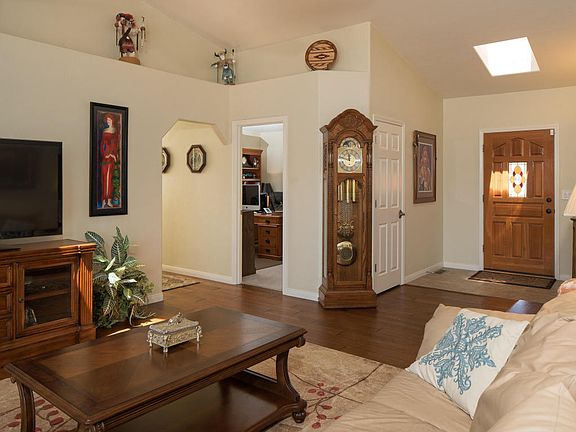 Sweeping long distance views from this immaculate and beautifully upgraded main level living home in Hidden Valley Ranch. Approximately 3045sf includes four bedrooms, three baths plus library. Gorgeous hardwood wide plank flooring welcomes you into the great room featuring a corner fireplace with sliders to a spacious partially covered viewing deck. Bright and sunny, the kitchen features efficient workspace w/granite counters, rich wood cabinets and b'fast area opening to the deck for BBQing. Lower level family room opens to a beautiful wrought iron fenced yard with pave stone patio and views. Close to hiking trails and abundant wildlife. Live in one of Prescott's most desirable communities bordering the Nat'l Forest. 2.5 car garage. HOA Amenities inc. pool, tennis and racquetball.