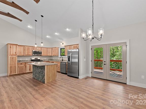 Beautiful brand new quality custom home on over an acre in the wonderful subdivision of Fisher Ridge. Anderson windows, granite counter tops, stainless steel appliances, hickory cabinets, gas fireplace, vaulted ceilings with 9’ at the lower side, all on one level for convenient living. Maintenance free Smart siding on the exterior. Large driveway for parking. 2 car garage with 10’ ceiling and plenty of room for storage and work benches. Open floor plan. Solid oak mantle on the fireplace. Spacious covered porch for entertaining or enjoying your morning coffee looking out on your wooded private land where elk, deer and turkey’s pass by. This house is a perfect year around residence or rental. Great location, 20 minutes to Waynesville, Harrahs Casino in Cherokee, Blue Ridge Parkway.