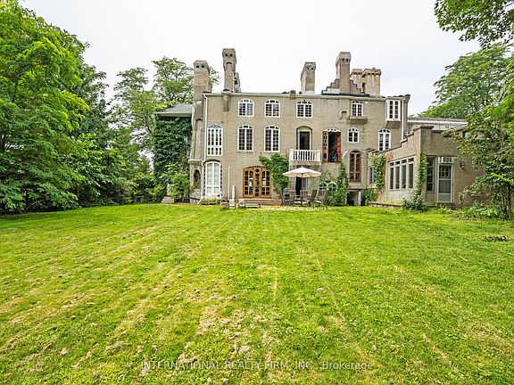 A Rare Historic Gem in the Heart of a Modern Neighbourhood. Surrounded by contemporary homes, this stately mansion stands as a proud tribute to 19th-century elegance and timeless craftsmanship. Resembling a storybook castle, this one-of-a-kind residence is rich in character, where every detail tells a story. Ivy-clad exterior walls, arched windows, and grand wooden doors create an unforgettable first impression, hinting at the refined interiors within. Step inside to a breathtaking foyer featuring soaring arched ceilings and original wood paneling, showcasing artisan-quality details throughout. Rich, polished oak floors flow seamlessly through arched doorways into each thoughtfully designed room. The formal dining room with its exposed brick walls and long mahogany table is ideal for elegant entertaining. The spacious kitchen blends historic charm with modern functionality, boasting a large granite island, open shelving, and a classic brick hearth. Upstairs, the generously sized bedrooms offer serene views through expansive arched windows, while the luxurious primary suite includes a sitting area and spa-like ensuite with a soaking tub. Outside, the vast grounds offer a private retreat with a stone terrace perfect for outdoor dining and entertaining. With 12,971 sq. ft. of finished living space plus an additional 2,500+ sq. ft. on the third floor that is 90% complete, this home offers exceptional potential. No heritage restrictions apply aside from demolition, giving you creative freedom while preserving its historical soul. Ideally located near London's top private schools, Western University, Medway Creek Trails, and the Museum of Ontario Archaeology.