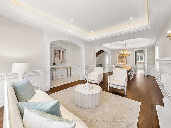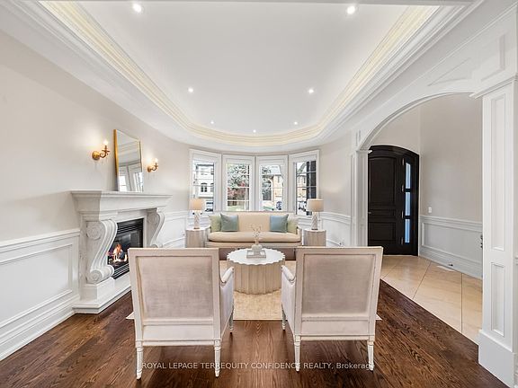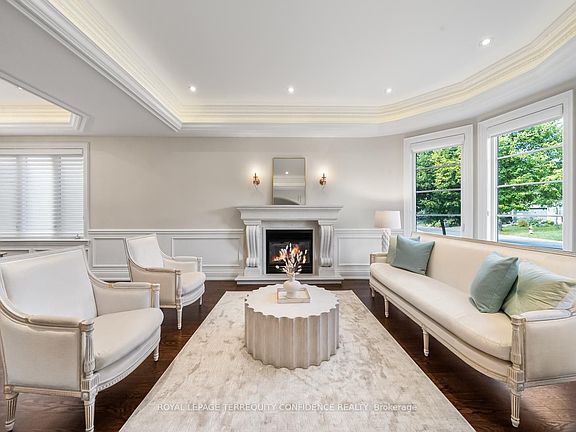 Stately luxury home, situated on a premium 54.24 x 131.5 foot, south-exposed lot in prime Willowdale. Nestled on a quiet tree-lined street, this meticulously maintained and upgraded residence boasts an array of unrivaled features: including a rare 3-car garage, 5 bedrooms, interlocking driveway with no sidewalk, elegant stone façade & manicured grounds. Enter through the solid mahogany front door to the grand double-height foyer. Bright & spacious principal rooms on the main floor, luxuriously finished with solid oak hardwood floors, wainscoting, LED pot lights, 2 gas fireplaces, crown moulding & rope lighting. Journey on to the large kitchen with granite counters, a center island, pantry, servery, built-in appliances, & a sublime breakfast area overlooking the tranquil backyard. Further, the magnificent family room is complete with built-in shelves & a gas fireplace, main floor office with wood paneling & custom built-ins. Upstairs, discover 5 large bedrooms; including the primary suite with a 10-foot vaulted ceiling, his & hers closets, a 7 piece ensuite, and balcony. The walk-out, finished basement is a private haven; with a recreation room, wet bar & gas fireplace, gym/theatre, & additional bedroom. Discover spectacular home upgrades throughout, including: new A/C (2023), dishwasher (2024), kitchen hood (2024), high-end silhouette window coverings (2022), high-end toilets (2022), central vacuum (2021), washer & dryer (2021), extra washing machine (2023), LED lighting (2023), sprinklers (2022), water filtration (2024), updated designer chandeliers, security system, exterior motion-sensing lights, and more. Highly desirable and convenient location with only minutes to highly ranked private & public schools, Earl Haig S.S., Bayview Ave, shops, & parks. Enjoy this truly rare combination of craftsmanship, functionality & timeless elegance.