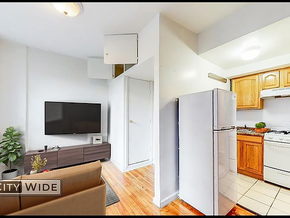 Bright and charming studio in a well-maintained walk-up building on a tree-lined block. The unit features hardwood floors, a kitchen with full-size appliances and wood cabinetry, and a cozy living space with oversized windows offering great natural light. Built-in storage adds functionality.