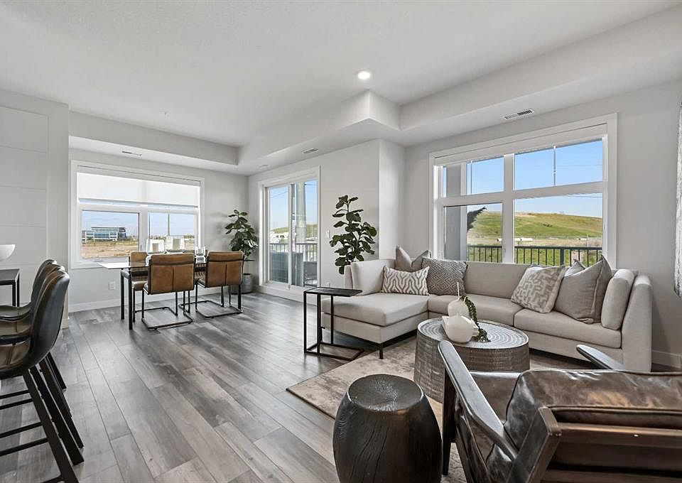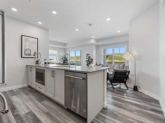 **BRAND NEW HOME ALERT** Great news for eligible First-Time Home Buyers – NO GST payable on this home! The Government of Canada is offering GST relief to help you get into your first home. Save $$$$$ in tax savings on your new home purchase. Eligibility restrictions apply. For more details, visit a Jayman show home or discuss with your friendly REALTOR®. LOVE YOUR LIFESTYLE! Les Jardins by Jayman BUILT next to Quarry Park. Inspired by the grand gardens of France, you will appreciate the lush central garden of Les Jardins. Escape here to connect with Nature while you savor the colorful blooms and vegetation in this gorgeous space. Ideally situated within steps of Quarry Park, you will be more than impressed. Welcome home to 70,000 square feet of community gardens, a proposed Fitness Centre, a Dedicated dog park for your fur baby, and an outstanding OPEN FLOOR PLAN with unbelievable CORE PERFORMANCE. You are invited into a thoughtfully planned 2 Bedroom, 2 Full Bath TOP FLOOR CORNER UNIT plus expansive balcony beautiful CORNER Condo boasting QUARTZ COUNTERS through out, sleek STAINLESS STEEL KITCHENAID APPLIANCES featuring a refrigerator with French doors with built-in water and ice, dishwasher with stainless steel interior, slide in stainless steel electric convection range with ceramic cooktop, built-in microwave and designer hood fan. Luxury Vinyl Plank Flooring, High End Fixtures, Smart Home Technology, A/C and your very own in suite WASHER AND DRYER. This beautiful suite offers a spacious dining/living area with sliding doors and large bright windows, a spacious entry corridor with two storage closets, an expansive balcony, a galley kitchen design with an extended eating bar, and side-by-side laundry. STANDARD INCLUSIONS: Solar panels to power common spaces, smart home technology, air conditioning, state-of-the-art fitness center, high-end interior finishings, ample visitor parking, luxurious hallway design, forced air heating and cooling, and window coverings in bedrooms. Offering a lifestyle of easy maintenance where the exterior beauty matches the interior beauty with seamless transition. Les Jardins features central gardens, a walkable lifestyle, maintenance-free living, nature nearby, quick and convenient access, smart and sustainable, fitness at your fingertips, and quick access to Deerfoot Trail and Glenmore Trail. It is located 20 minutes from downtown, minutes from the Bow River and pathway system, and within walking distance to shopping, dining, and amenities. Schedule your appointment today!