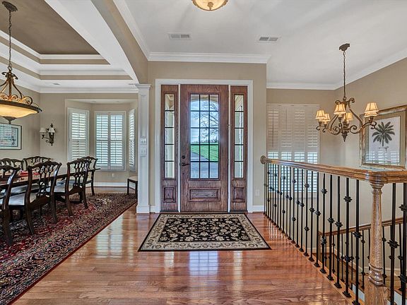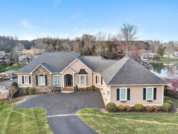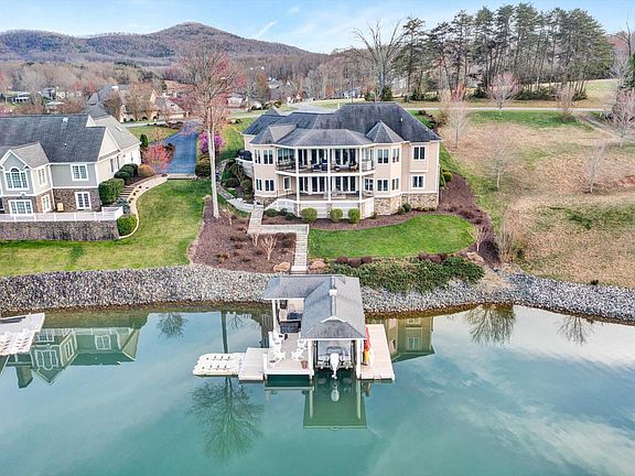 The Waters Edge-Custom built by B & A Construction. Hardy plank and stone. Open spacious floor plan, expansive ceilings with crown molding and custom cabinetry throughout. Enormous open kitchen with large island perfect for family, friends and multiple chefs. Large main flr master ste with luxurious full bath and large walk-in closet. Office/guest bdrm on main. 3 fireplaces w/ gas logs. Lower level offers 3 bedrooms, 2.5 baths, wet bar w/ game area and storage. 2 covered porches overlooking lake and mountains. Large 3-car garage. Custom dock with covered storage. Deep water cove for your enjoyment to swim. Active club membership available for 35K to be paid by Purchasers within 30 days of closing. Amenities: golf, tennis, pickleball, exercise facility, dining, swimming and Equestrian.