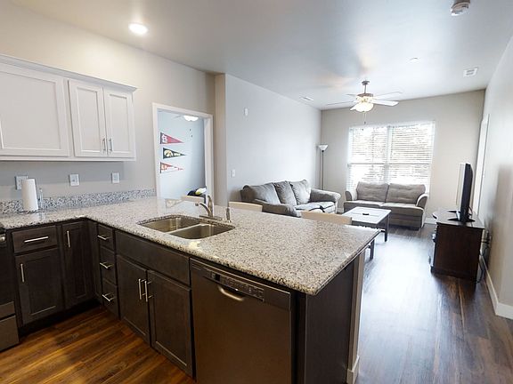 With luxury flooring throughout each unit and granite counters in the kitchen, you'll be comfortable staying in or having friends over. Most bedrooms boast a walk-in closet, and each unit includes a private washer and dryer. Our one-bedroom units are very spacious.