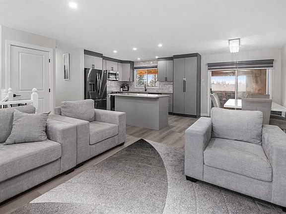 Welcome to a home that has been completely transformed from top to bottom with modern finishes and thoughtful design. This move-in-ready property offers the ideal blend of style, function, and flexibility, perfect for families, multi-generational living, or investors. Inside, you will find wide-plank vinyl flooring, an open-concept layout, sleek pot lighting throughout, fresh paint from top to bottom, and all new doors and casings. The upgraded kitchen features matte cabinetry, granite countertops, a porcelain marble backsplash, and black stainless steel appliances, creating a beautiful and practical space for everyday living and entertaining. The main level includes a cozy living area with a wood-burning fireplace, three comfortable bedrooms, and a fully updated bathroom. The lower level adds exceptional versatility with a spacious primary bedroom and private ensuite, plus an additional 1-bed/1-bath illegal suite with its own kitchen and separate entrance. This setup is ideal for extended family or a nanny suite. Outside, the upgrades continue with new stucco, a new roof, updated concrete and deck, modern fencing, and a new garage door. Come see it in person. This one truly stands out!