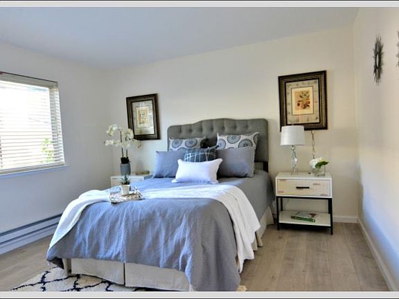 Newly upgraded ground level condo in a friendly gated 14-unit community. New interior paint, New floors, Quartz counter tops and soft close white cabinets in kitchen and bathroom, stainless steel appliances, dual pane windows and new patio door. 2nd bedroom with walk-in closet. Large storage closet in hallway. Landscapes were redesigned in early 2018. BBQ area and swimming pool are in the center of the complex. Sitting next to the pool to enjoy the redwoods like in your own yard. Community vegetable garden is at the end of the complex. One covered carport and one open parking space fore each unit. Extra storage cabinet in assigned carport area. A few minutes walk to Stevens Creek Trail, playground and Whisman park, close to downtown Mountain View, CalTran station, Google and LinkedIn. Easy access to Highway 85, 101 and 237. Free Mountain View Community shuttle bus stop is right outside the gate. No pet restrictions. Small exercise room. HOA also includes Walls-In coverage.