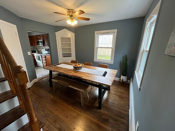 This home features hardwood floors throughout, large closets in bedrooms, a deck, a large fully fenced yard, and off-street parking for four cars.
