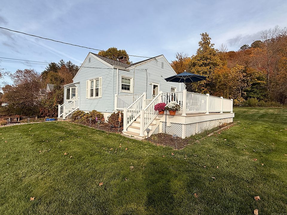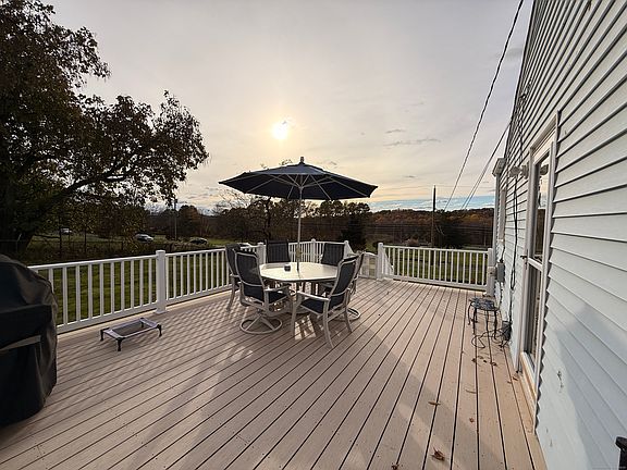 RUN, DON'T WALK! This one won't last. This very well-maintained ranch home has central air conditioning, three bedrooms, living room, eat-in kitchen with granite counters, stainless steel appliances and tile flooring. A great area for family dinners/gatherings and game nights! From the moment you walk through the front door, you are welcomed by a good-sized living room, wood-burning stove and large bay window. Using the side door in the kitchen, you will be excited to relax after a long day at work on your trex deck (2008) and is a great spot for summer relaxation and get togethers. The large backyard is big enough to put a swimming pool or have large family/friend gatherings. The living rooms, hallway and bedrooms are wall-to-wall carpeted with hardwood flooring underneath, and the bathroom has ceramic tile flooring. Hot water heater (6 year's old); new septic (2007); architectural roof (8 year's old, approximate). Seller has lived in this home for decades, has made many memories and has taken very good care of it and is now ready to turn it over to the next set of owners to make their memories. Professional photos will be Friday and then uploaded this weekend. Listing agent is related to the seller.
