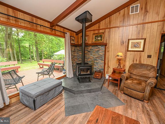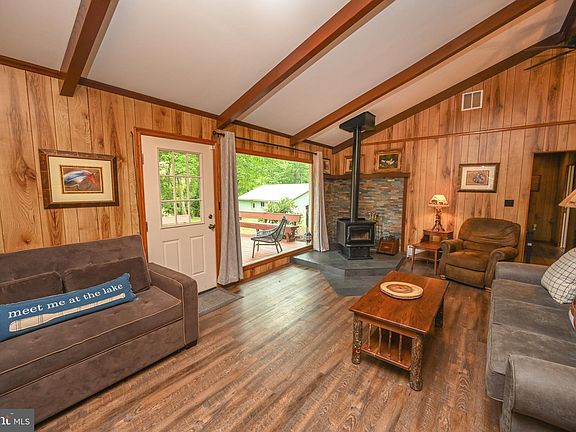 Escape to tranquility with this charming and affordable home nestled in the heart of the mountains of Western MD. Imagine waking up to the views of your breathtakingly beautiful backyard with a fishing pond, the serene sounds of nature, and fresh mountain air. This cozy home was just recently remodeled with a new kitchen and bath, new beamed ceilings, and new tile in the bathroom. The home as laminate plank flooring throughout! The living area is wonderful with an extra large picture window looking out onto the amazing backyard. It has a new wood stove for those wonderful winter nights. Custom built in cabinet with shelves complete the picture! The kitchen is also recently redone with upgraded countertops, new stainless steel appliances and lighting. There is a breakfast bar off of the dining area that has a large picture window. A charming large bedroom with vaulted ceiling, large closet. A recently redone bath with a large closet. Two unique other bedrooms also have vaulted ceilings. The laundry/mud room has access to the outside and the garage. This property also has a large garage/workshop with so many possibilites. Also has radiant floor heating throughout.! Whether you're looking for a peaceful retreat, affordable vacation home, or permanent residence, this is a perfect place to create lasting memories. Close to all the activities that Deep Creek Lake have to offer. Don't miss out on this unique opportunity!