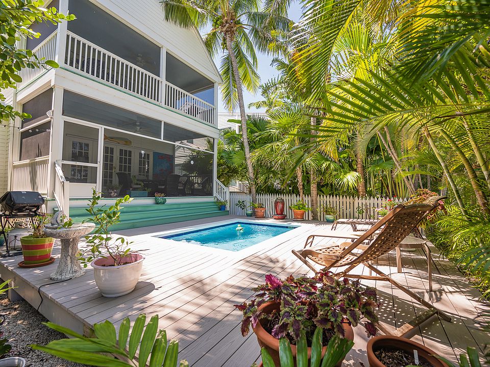 JUST LISTED in the exclusive Sanctuary at the Key West Golf Club. Immaculate 1600 sq.ft single family home with must see sunrise views and a warm and relaxing feel immediately upon entering the expansive open floor plan offering a dining and living area that leads to French Doors and out to the screened in porch and then down to the inviting private heated/chilled 10x14 , 6ft deep pool which has recently been resurfaced and converted to a salt water system. The lushly landscaped yard is perfect for entertaining. The den downstairs can be used as a 4th bedroom with a powder room close by. Three bedrooms upstairs with a split floor plan - Master bedroom with a new master bath and screened in porch to enjoy views of the beautiful backyard and 17th Fairway. Two nice size guest rooms share a bath. Tile floors up and down. Newer A/C and water heater. Carport and driveway for off street parking. Most furnishings are available - move in ready for quick occupancy. The Golf Course offers two community pools, a Gym, Library, 24 hour security and onsite management. Quick and easy to show. Hurry - call for your personal showing today - don't miss this beautiful home - it won't last!