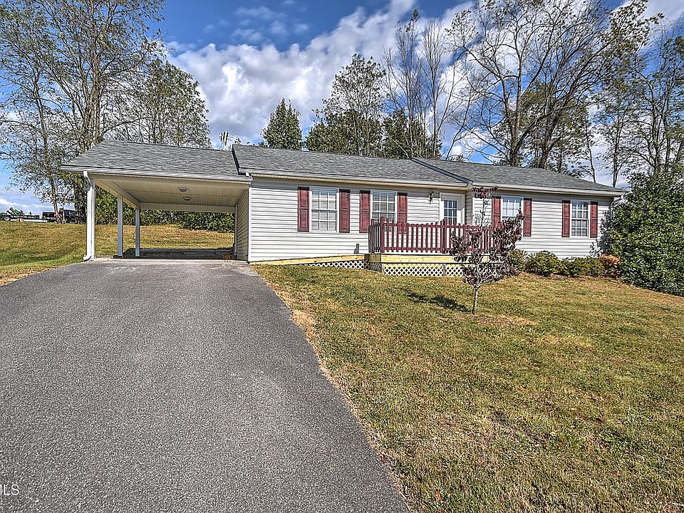 GREAT ONE LEVEL!!! This one level ranch has an absolutely huge living room, 3 good sized bedrooms, 2 full baths, a seperate dining space and an oversized carport with plenty of covered storage. The Galley kitchen has its own entrance as well as a front entrance with a new deck with a ramp. A new architectural shingle roof and a brand new Heat Pump were installed 3 years ago in 2022. New carpet was installed in 2024, the flooring in the living room, kitchen, dining room and hallway was installed less than 8 years ago. This home has been in like new condition for most of the time the current owner has had it. Located less than 2 minutes from main street and exit 17, this house has a lot to offer. Below the property is a walking trail (public bike path that connects to the creeper trail) that goes all the way through town. You can also access 40 acres of public land that connects to the back yard of this property. That land connects to and includes the Muster Grounds.