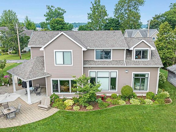 Tucked at the end of a peaceful dead-end road on all-sports Crooked Lake, this rare gem boasts 138 feet of flat, highly sought-after lake frontage—marking the first home on this exclusive point to hit the market since May 2022. Built by Bob Buescher Homes with pilings for added foundation stability, this thoughtfully designed retreat features a light-filled living room with oversized windows and a stunning stone gas fireplace, flowing into the open kitchen with granite countertops, a center island with breakfast bar, and a dedicated dining area. The main level hosts a spacious primary suite with tray ceiling, twin-sink vanity, and walk-in closet, along with laundry and a half bath for added convenience. Upstairs offers an office space, family room, three additional bedrooms, and a full bath, while the attic provides generous storage. Enjoy lake life from the spacious covered concrete patio or gather around the open brick patio with a built-in fire pit—both offering serene views and the perfect setting for outdoor relaxation and entertaining. Extras include a central vacuum system with kitchen sweep, surround sound, reverse osmosis water system, irrigation system, whole-home humidifier, security system wiring, marble bathroom counters, and an RV pad with extra-thick concrete and dedicated plug-in!